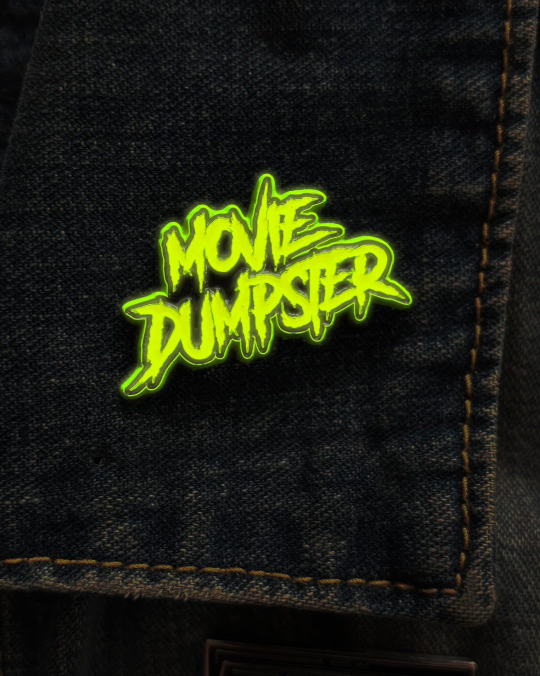 An Movie Dumpster logo pin that glows in the dark!